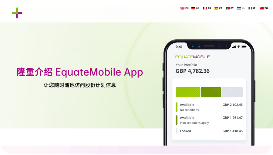 These videos and web pages are available in the eight EquateMobile languages. Share them with all your employees and plan participants and encourage them to start using EquateMobile today.